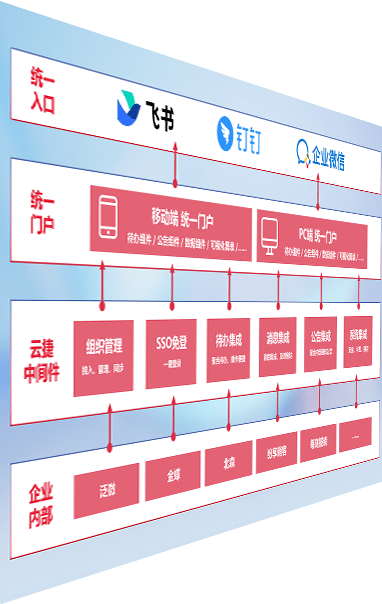 对协作平台提供支持服务,,,支持企业应用与协作平台对接,,包含组织同步、、、消息集成、、、待办集成等。。。。支持目前主流的协作平台:钉钉、、企微和飞书。。